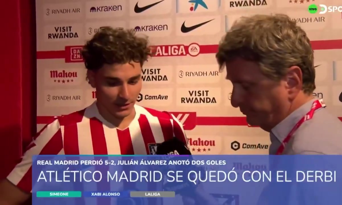 09月28日讯 马德里德比,马竞5-2大胜皇马。阿尔瓦雷斯连进两球。赛后阿尔瓦雷斯接受DSport采访。