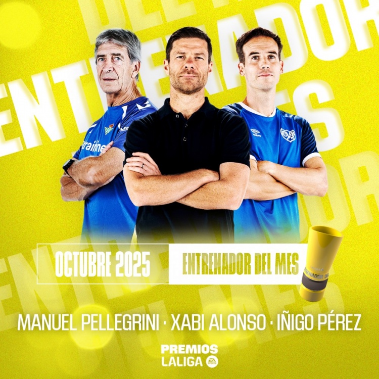 10月22日讯 西甲官方评选了10月最佳主帅候选3人名单,阿隆索领衔。
