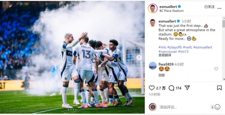 穆勒社媒晒出照片庆祝季后赛首胜,免费欧洲杯直播他写道:“这只是第一步,但运动活动 场 内的氛围太棒了,准备迎来更多…⚽️💪”