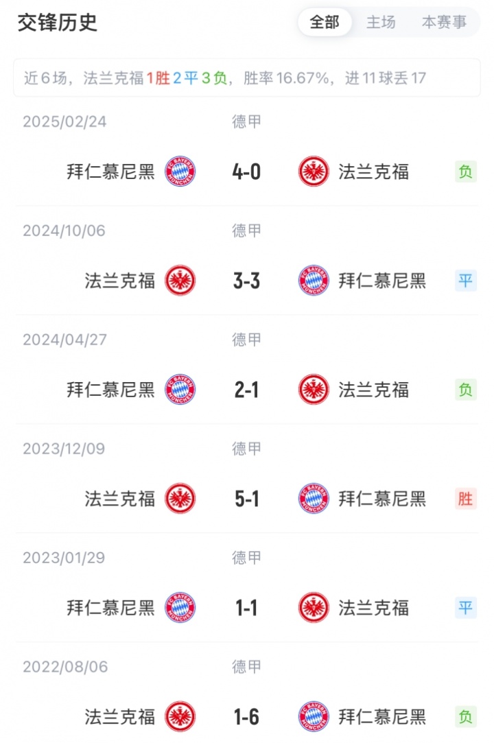 10月4日讯 德甲第6轮,足球直播无插件免费在线观看法兰克福主场作战 迎战拜仁赛事 即将打响。赛前杆位出炉。